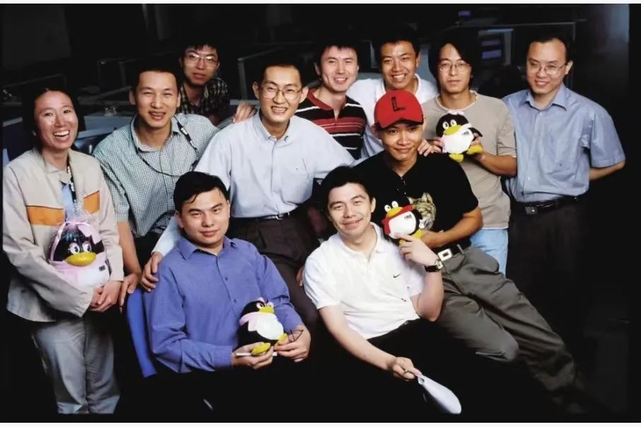 騰訊創(chuàng)始團隊在華強北賽格科技創(chuàng)業(yè)園的老樓里的合影 圖源:吳曉波《騰訊傳》