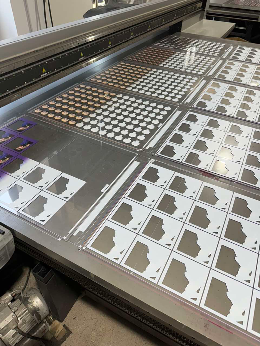 如果印制單層的圖片,一般使用成本低廉的銅版紙。但隨著消費者對工藝和美觀度要求逐漸提升,當下流行的“吧唧”除鐵皮底之外往往還分為三層:一層是閃底,使用具有閃光效果的紙面作為背景;中間層是PET印刷層,印制了最重要的圖案;最外部是覆膜層,起到保護和美化作用。