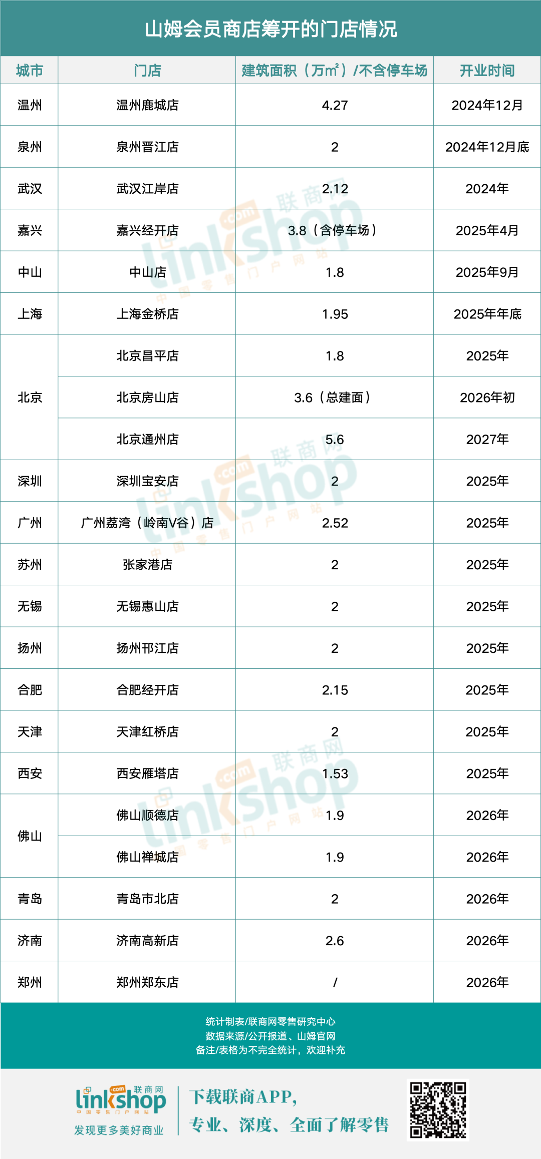 根據(jù)開店節(jié)奏,山姆預(yù)計每年將新開6-7家店。據(jù)《聯(lián)商網(wǎng)》統(tǒng)計,目前山姆在建及籌開的門店數(shù)量已經(jīng)達(dá)22家,最晚的將于2027年開業(yè)。
