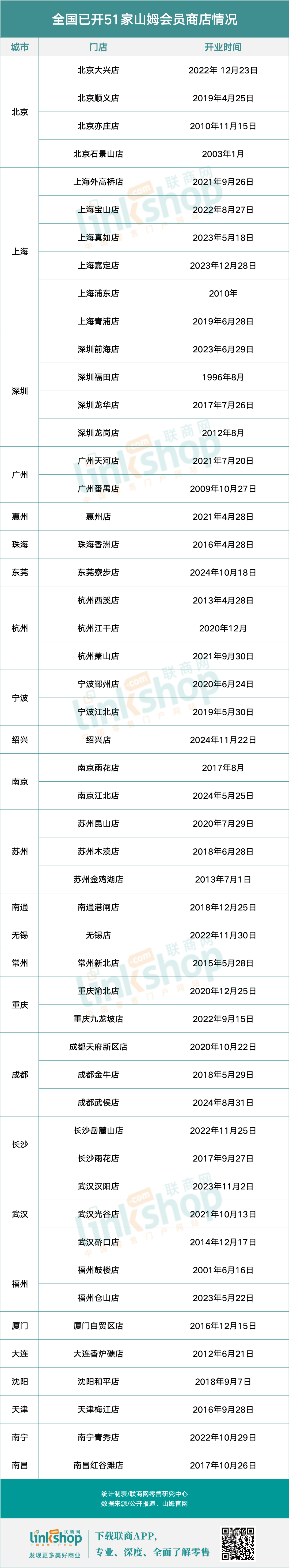 附:全國已開51家山姆會員商店情況