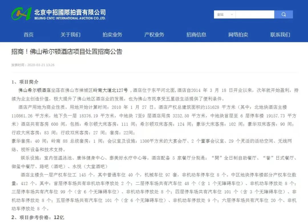按照當(dāng)時(shí)的公告,佛山希爾頓酒店處置招商參考價(jià)格為12億元,不過(guò)后續(xù)并未發(fā)生任何成交。