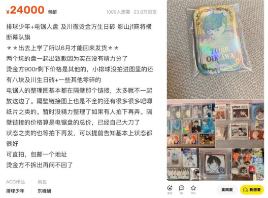 一塊成本只有數(shù)元人民幣的金屬徽章,在線上拍賣平臺(tái)卻可能賣出數(shù)千乃至數(shù)萬元的價(jià)格。一家二次元周邊商品店月銷售額可達(dá)數(shù)十萬元。閑魚、抖音、快手、小紅手等平臺(tái)紛紛入局,產(chǎn)業(yè)前景似乎一片光明。