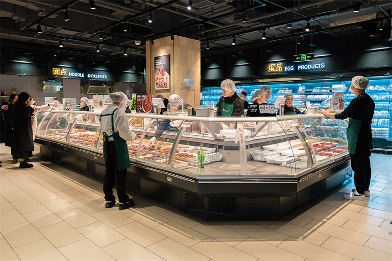 據(jù)了解,廬陽萬象匯店整體硬件設(shè)施更新占比達(dá)80%,取消了強(qiáng)制動線,擴(kuò)大了購物通道,讓賣場動線更流暢,新增散稱食品、蔬菜水果、活鮮區(qū)域的商品貨架等設(shè)備設(shè)施,收銀機(jī)臺也增加到了22個(gè),并在自助收銀處配備了裝袋打包崗位,幫助顧客完成自助結(jié)賬的流程。
