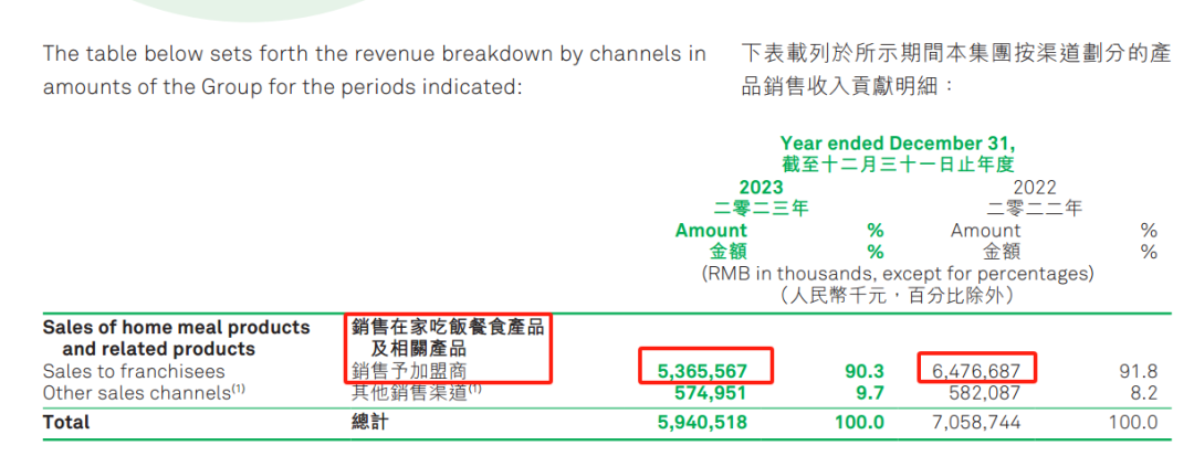 以鍋圈為例,其財報顯示,2022年、2023年的銷售在家吃飯餐食產(chǎn)品及相關產(chǎn)品的銷售予以加盟商的收入,分別是64.77億元和53.67億元,今年上半年已經(jīng)縮減至23.38億元。