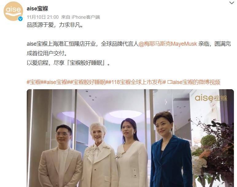 近日,“全球首富”埃隆·馬斯克的母親——梅耶·馬斯克不遠(yuǎn)萬(wàn)里“閃現(xiàn)”上海,出席了一家床品品牌——“aise寶褓”首家線下旗艦店的開幕式。