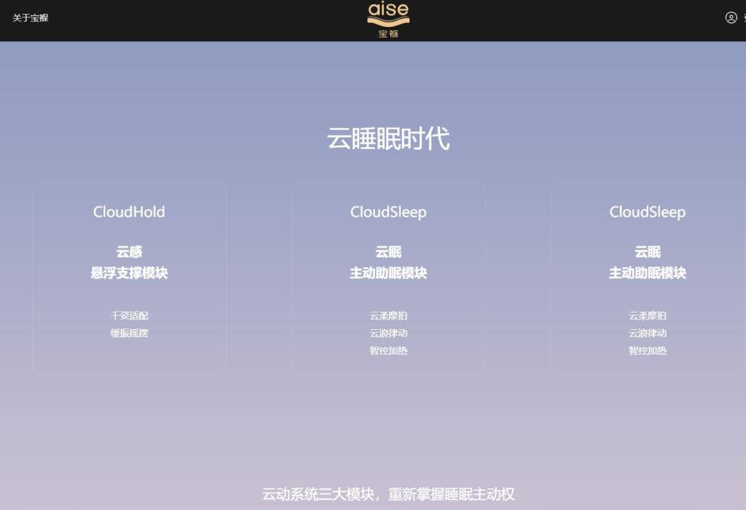 據(jù)“趣解商業(yè)”了解,最新開始交付的“aise寶褓”智能床,號(hào)稱包含107項(xiàng)專利技術(shù),所搭載的全球發(fā)明專利——云動(dòng)系統(tǒng),集成Cloudhold、Cloudsleep、iRoomy等三大睡眠科技模塊,通過將人工智能(AI)與物聯(lián)網(wǎng)(IoT)技術(shù)相結(jié)合,幫助用戶找到香甜睡眠。