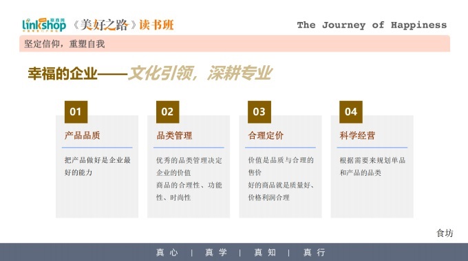 第三個轉(zhuǎn)折,因信仰,重塑自我。當我意識到這些問題的時候,我就開始反省自己。正好這時候,聯(lián)商網(wǎng)聯(lián)合東來哥成立聯(lián)商東來商業(yè)研究院,我趕快報名參加。我非常感謝聯(lián)商網(wǎng)搭建這個平臺,通過跟東來哥學習,也通過自己這幾年的一些感悟,我決定重新塑造一個我,我不能這一輩子就這樣干死。如果我沒有遇上聯(lián)商網(wǎng),如果我沒有遇到東來哥,也許可能就是我第一個干死的。
