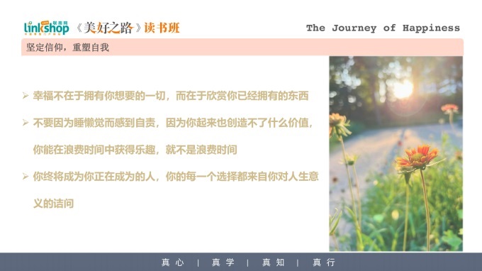 自從跟著東來哥學習以后,我開始認真的反省自己。東來哥在成都鄰你給我們講完以后,我恍然大悟,應(yīng)該來講我真正的覺醒了,原來的自由和快樂都是偽自由,偽快樂。我要改變,我要去發(fā)現(xiàn)生活的美,我要去享受生活的美,我不能讓自己一直活在“偽自我”的狀態(tài)中。