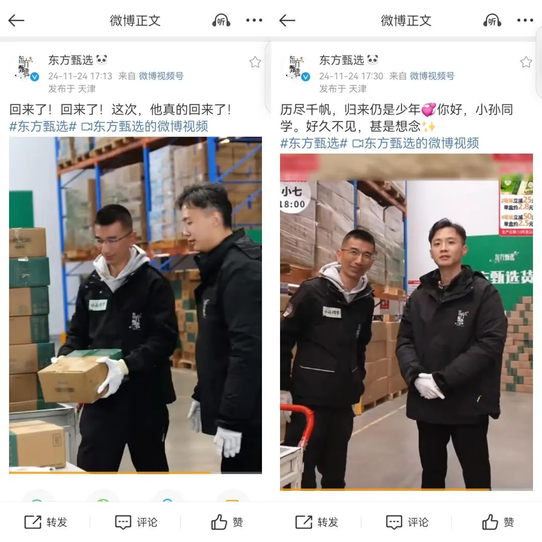 東方甄選微博歡迎孫東旭“回歸”