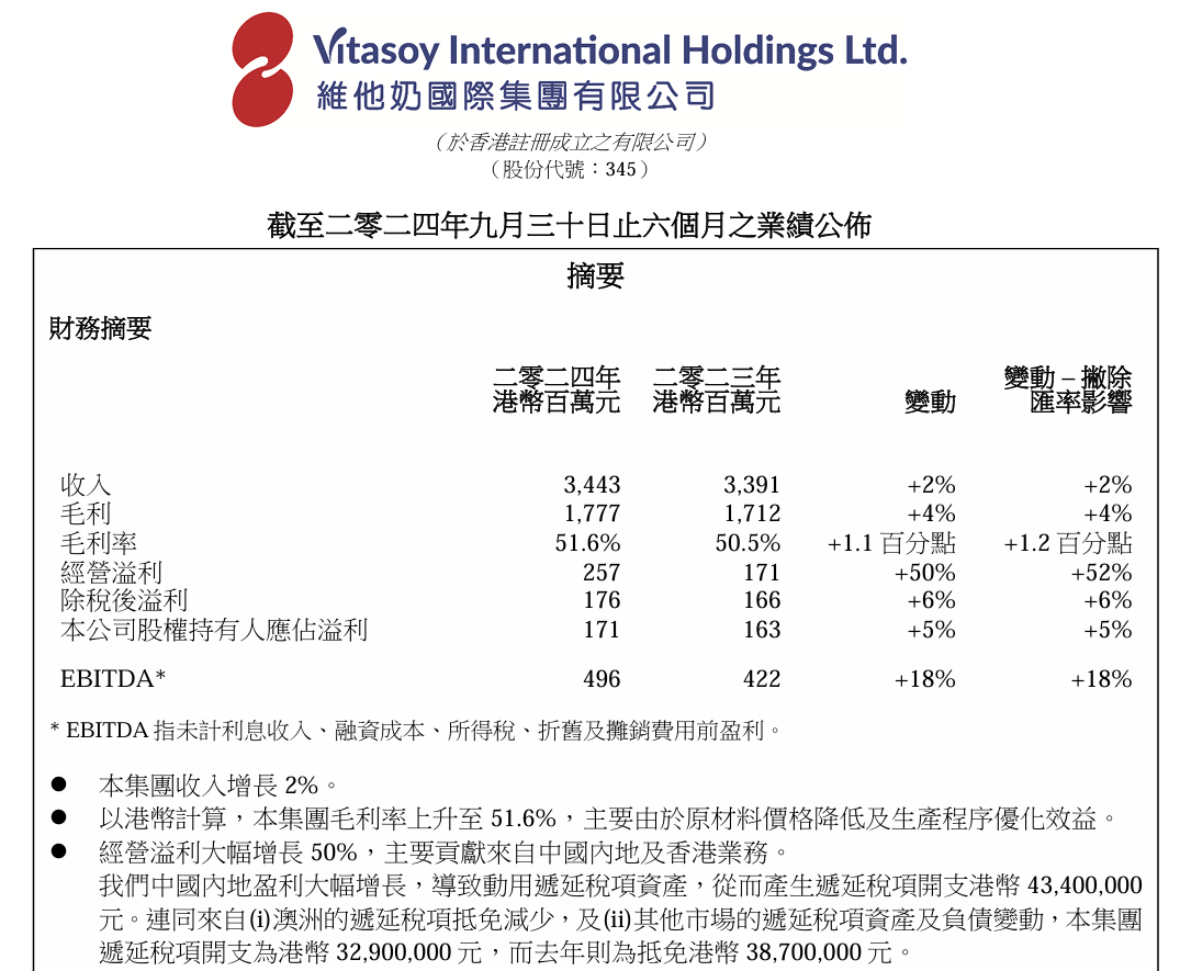 維他奶新財(cái)年中報(bào)經(jīng)營(yíng)溢利增50%!但別急著說(shuō)“回暖”