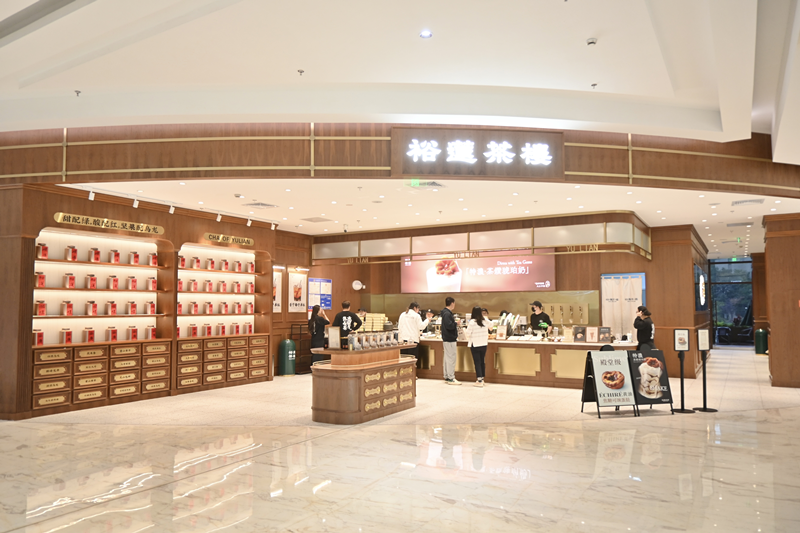 一樓通過業(yè)態(tài)的變更調(diào)整,增加了愉悅輕松氛圍的下午茶區(qū)域,引進(jìn)山緩緩公司旗下輕餐品牌BAKER BLEU、裕蓮茶樓、KOI的手作定制店、瑞士卷品牌the Roll’ING和極具特色的宜興本地中式茶飲品牌八十游茶,吸引了諸多年輕群體前來拍照打卡,為項(xiàng)目帶來了年輕的活力。