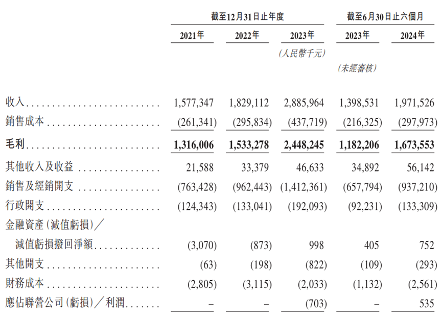 結(jié)合財(cái)報(bào)來(lái)看,毛戈平擁有極強(qiáng)的成長(zhǎng)性,2021年-2023年?duì)I收復(fù)合年增長(zhǎng)率為35.3%;凈利潤(rùn)復(fù)合年增長(zhǎng)率為41.6%,確實(shí)具備推開資本市場(chǎng)大門的底氣。