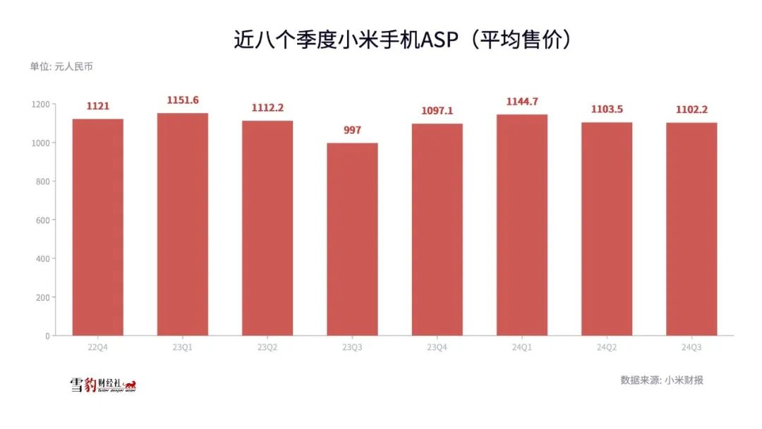 小米集團(tuán)副總裁林世偉在Q3財報電話會上透露,2024年前九個月,小米高端智能手機(jī)銷量占小米手機(jī)總銷量的21.3%,同比提升了3.9個百分點(diǎn)。財報顯示,小米智能手機(jī)ASP(平均售價)為1102.2元,較去同期提升10.6%,但仍然與高端品牌差距懸殊。