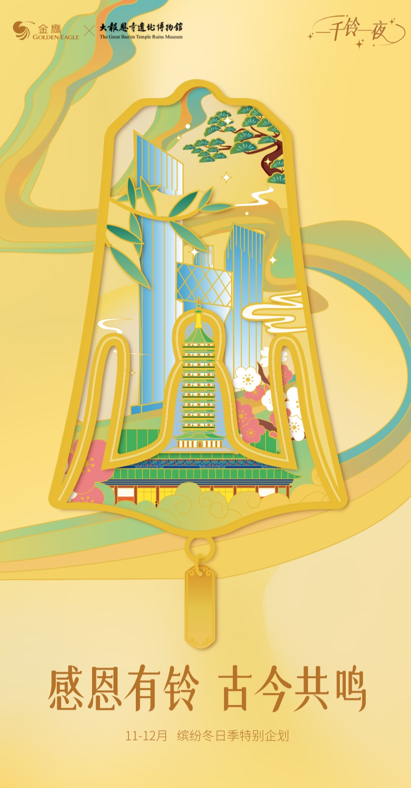 金鷹集團(tuán),作為城市商業(yè)的領(lǐng)航者,首次與南京大報(bào)恩寺遺址博物館攜手,共同拉開今年“繽紛冬日季”系列主題活動(dòng)的序幕!案卸麾彙保敉案卸髂,這不僅是一次對(duì)顧客長期以來深情厚誼的誠摯回饋,更是一場穿越古今、連接心靈的感恩與愛的時(shí)代交響。