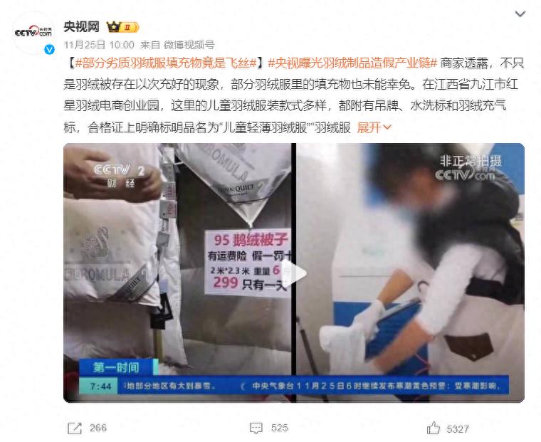 冬天來了,羽絨服卻“出事”了。近日,央視曝光了一起一些不法商家以“絲”代“絨”的羽絨服亂象。
