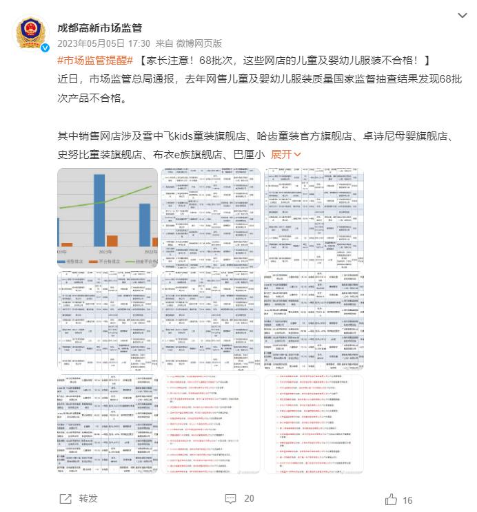從雪中飛自身來看,除了貼牌引發(fā)的爭議,其產(chǎn)品質(zhì)量也曾被部分消費者質(zhì)疑。黑貓投訴平臺上,有多條與雪中飛相關(guān)的投訴,投訴原因包括商品有瑕疵、買到假貨、拉鏈有問題等。此外,2021年,江蘇省市場監(jiān)督管理局抽檢發(fā)現(xiàn)雪中飛羽絨服不合格。2022年,雪中飛因一款長袖襯衫不合格被點名。2023年,市場監(jiān)管總局通報了網(wǎng)售兒童及嬰幼兒服裝質(zhì)量國家監(jiān)督抽查結(jié)果,雪中飛kids童裝旗艦店銷售的產(chǎn)品在68批次不合格產(chǎn)品中。