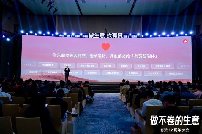 過去,有贊給大家提供的是一個管理系統(tǒng),一堆功能做成的軟件,大家要自己去理解產(chǎn)品設(shè)計的邏輯、功能構(gòu)成,然后學會使用它,學習成本、操作成本、運營成本都非常之高。現(xiàn)在有贊用智能助手、智能體、全托管服務(wù)幫助商家快速完成布置的工作任務(wù),商家只需要制定經(jīng)營目標,其他的都交給智能化去完成。
