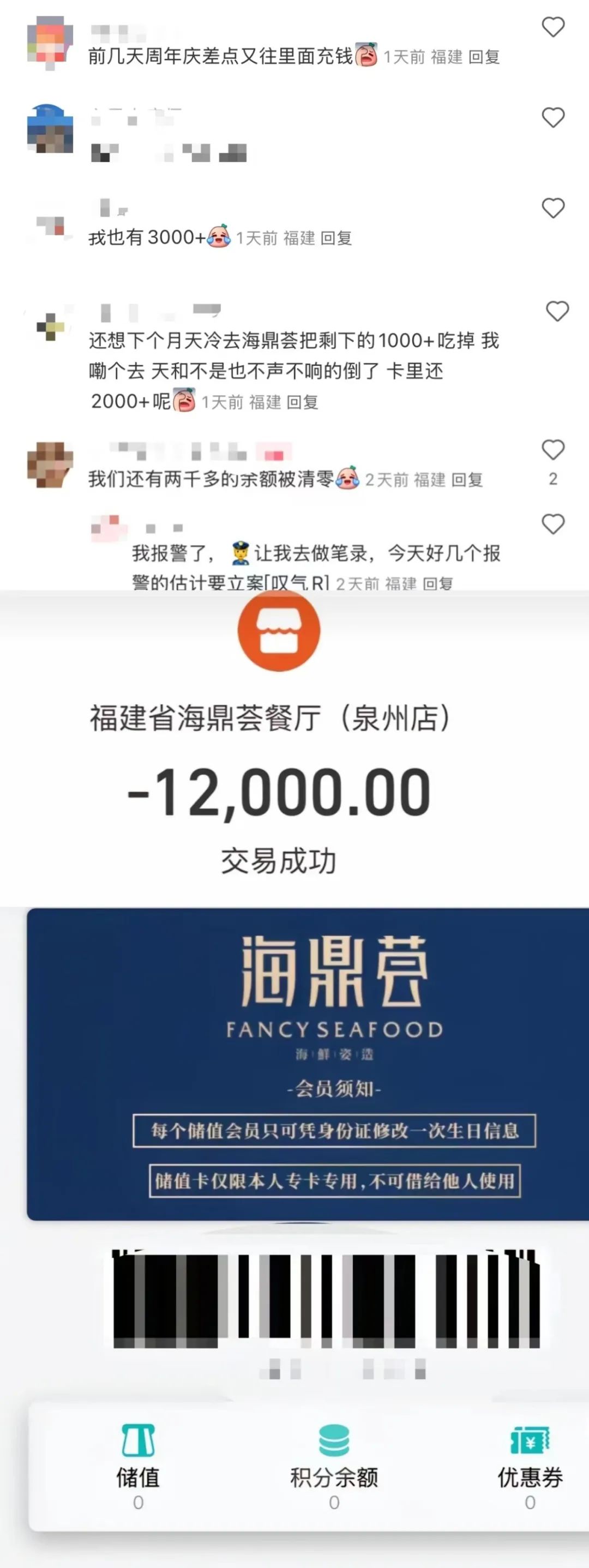 近日,位列高德、大眾點評等平臺廈門餐飲美食榜的海鼎薈海鮮自助餐廳被曝悄悄閉店,不少充值會員卡內(nèi)的金額被“清零”,疑似跑路。