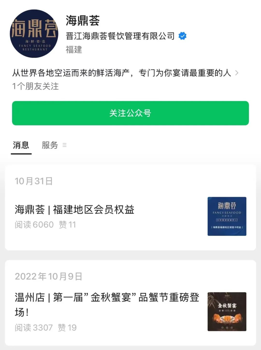 而海鼎薈官方微信公眾號在2022年停更后,突然在10月31日更新了一條“福州地區(qū)會員權(quán)益”的內(nèi)容。