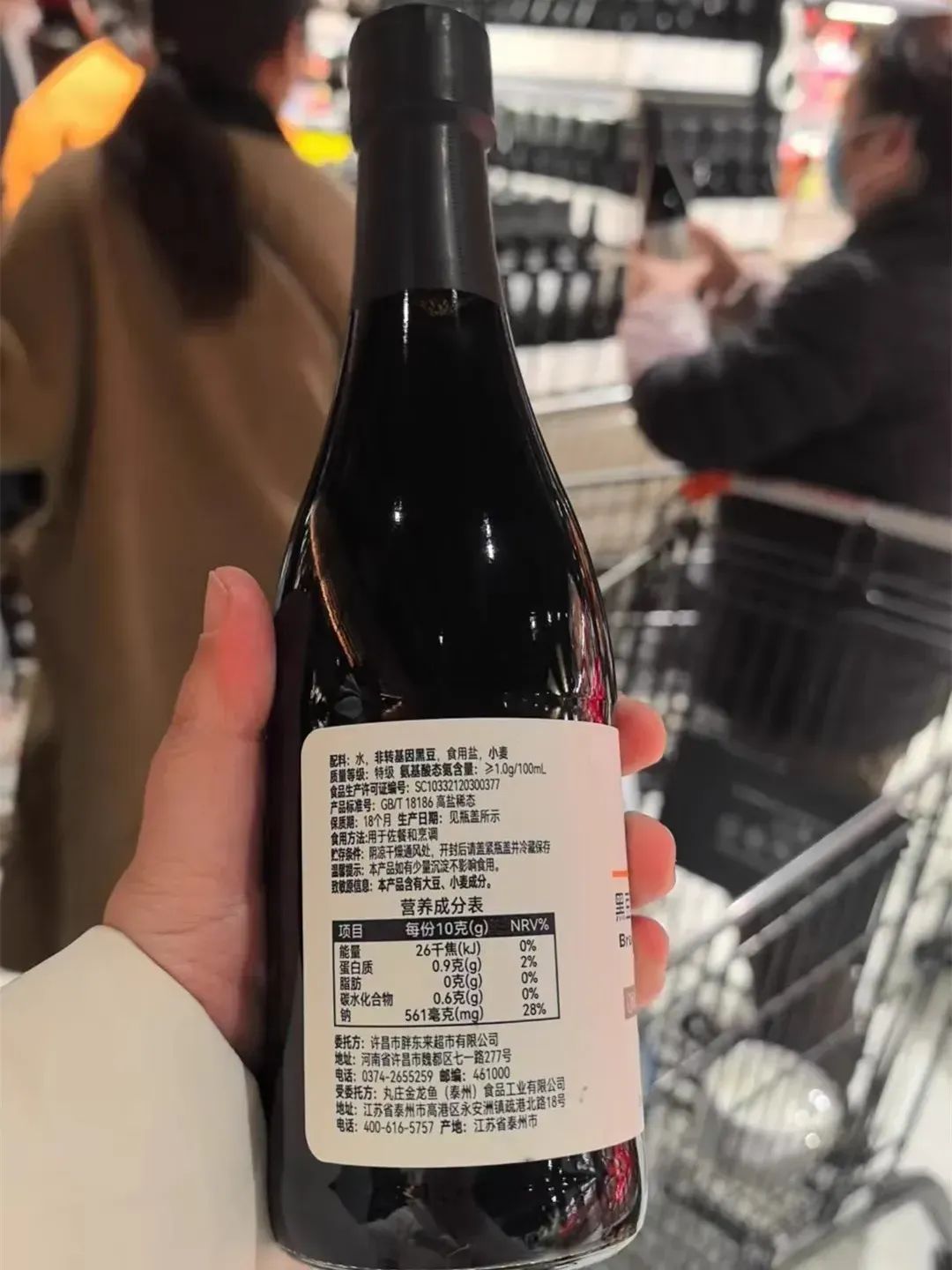 筆者進(jìn)一步了解發(fā)現(xiàn),該款醬油由許昌市胖東來超市有限公司委托,丸莊金龍魚(泰州)食品工業(yè)有限公司生產(chǎn),單瓶規(guī)格為480ml/瓶。也就是米面糧油醬料類生產(chǎn)商益海嘉里旗下的子公司生產(chǎn)的。丸莊醬油始于1909年,來自中國臺(tái)灣,經(jīng)歷4代傳承之后,與2015年正式聯(lián)手金龍魚進(jìn)入中國大陸市場。2015年,臺(tái)灣丸莊食品工業(yè)股份有限公司與益海嘉里集團(tuán)共同投資建設(shè)丸莊益海天然釀造醬油項(xiàng)目,可年產(chǎn)16萬噸優(yōu)質(zhì)醬油,包括黑豆醬油、黃豆醬油、豆麥醬油等各類高端天然釀造醬油。2019年,丸莊醬油推出原汁、原釀、醇釀和紅燒四種口味的黑豆醬油產(chǎn)品。
