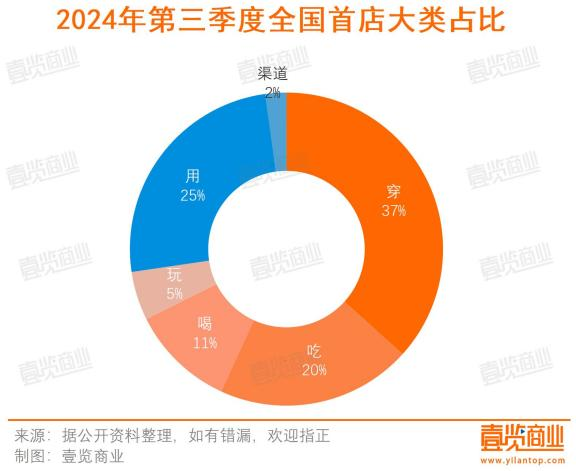 從業(yè)態(tài)分布看,穿和用是第三季度的熱門業(yè)態(tài),加起來共有86家全國首店,占比約為61.87%。其中,服飾依舊是熱門行業(yè),開出40家全國首店,占比達(dá)28.78%。