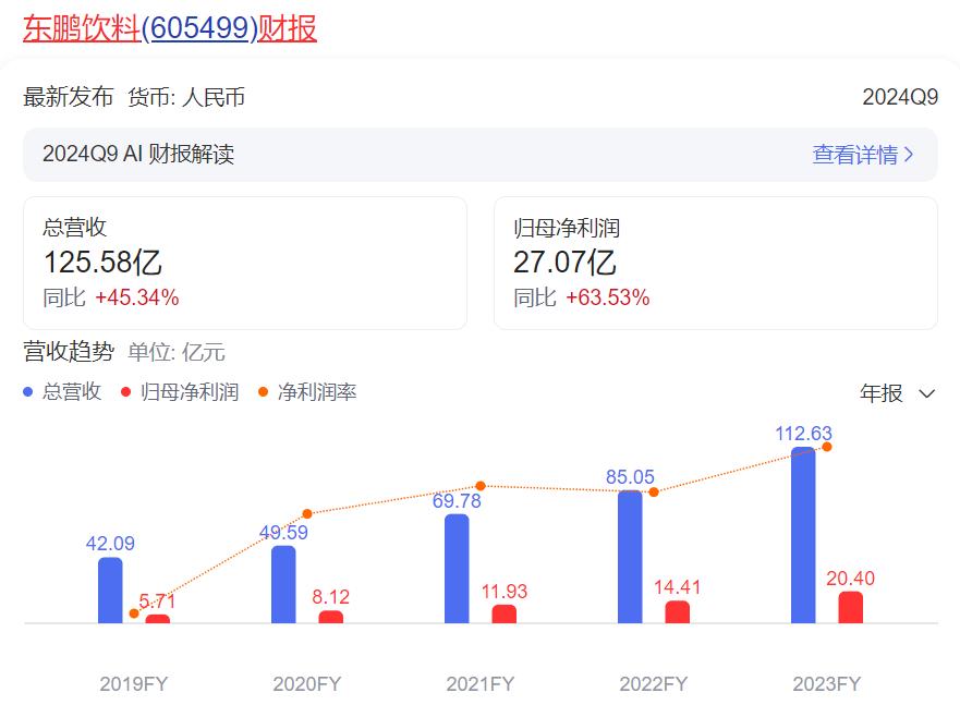 作為國內(nèi)知名功能飲料品牌,東鵬飲料近兩年的業(yè)績表現(xiàn)也較為出色。財報顯示,近四年,東鵬飲料的總營收和凈利潤同比都在增加,2023年,其總營收和凈利潤分別突破100億元和20億元,創(chuàng)歷史新高。較為出色的業(yè)績,或?qū)闁|鵬飲料赴港上市增加一份助力。