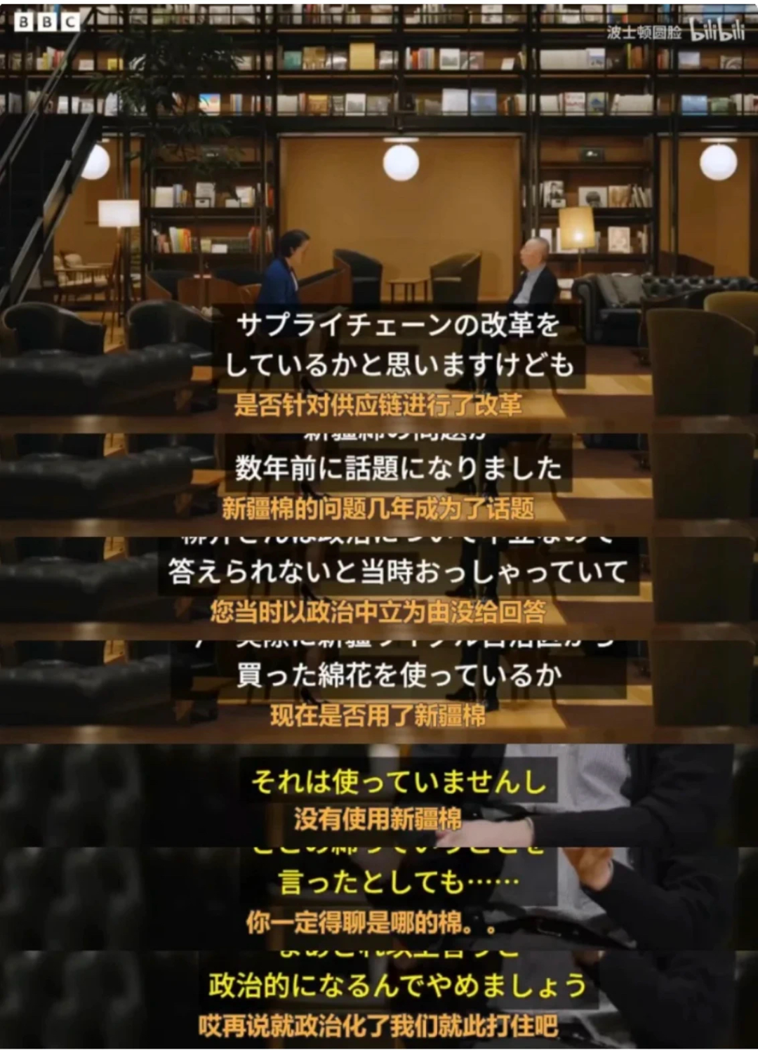事情起因,優(yōu)衣庫創(chuàng)始人柳井正在接受英國媒體BBC采訪時(shí),針對現(xiàn)在優(yōu)衣庫是否使用了新疆棉的問題回答道,“沒有使用,你一定得聊是哪的棉……再說就政治化了,我們就此打住吧。”