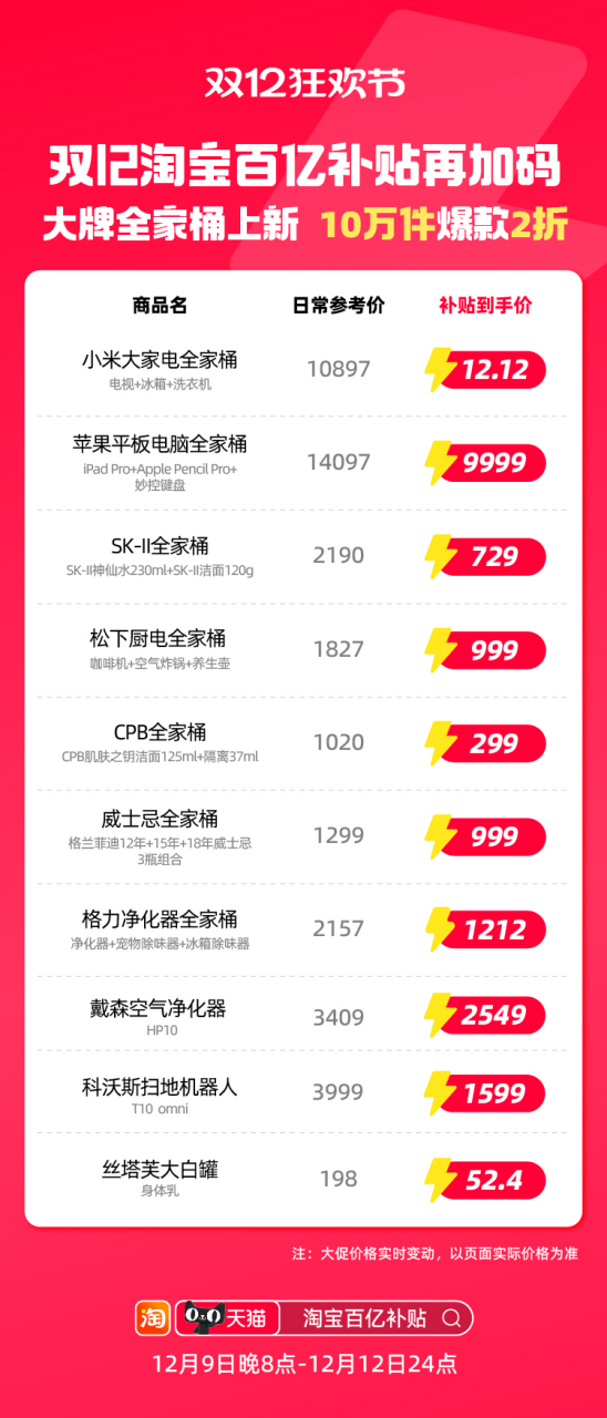 淘寶雙12大牌“全家桶”再上新 ,小米全家桶低至12.12元