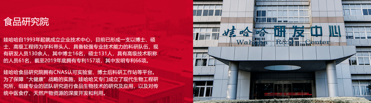 根據(jù)娃哈哈官網(wǎng)公開的信息,娃哈哈現(xiàn)有食品和機(jī)電兩大研究院。其中食品研究院始于1993年成立的企業(yè)技術(shù)中心。