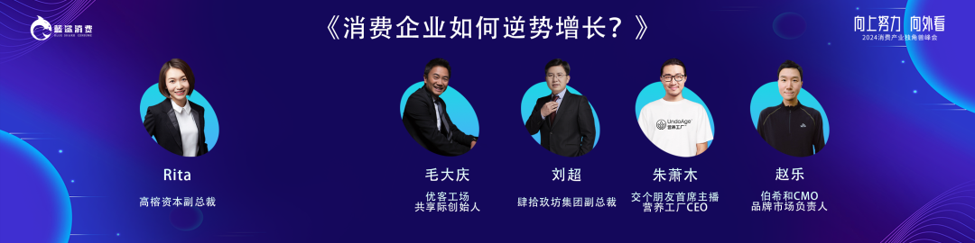 由投資了量販零食萬店品牌鳴鳴很忙集團(tuán)的投資人高榕資本副總裁Rita主持的《消費(fèi)企業(yè)如何保持韌性與增長?》圓桌論壇上,美股上市公司優(yōu)客工場(共享辦公頭部品牌)、共享際(餐飲等本地生活創(chuàng)新消費(fèi)業(yè)態(tài)孵化平臺(tái))創(chuàng)始人毛大慶, 醬酒獨(dú)角獸品牌肆拾玖坊副總裁劉超,港股上市公司、著名MCN機(jī)構(gòu)交個(gè)朋友首席主播、營養(yǎng)工廠CEO 朱蕭木,今年剛拿到啟明創(chuàng)投、創(chuàng)新工廠等著名投資機(jī)構(gòu)數(shù)億元投資的頭部戶外運(yùn)動(dòng)品牌伯希和CMO、市場品牌負(fù)責(zé)人趙樂,將結(jié)合自身的體會(huì)和感受,探討消費(fèi)企業(yè)如何面對(duì)行業(yè)內(nèi)卷,有什么反內(nèi)卷的高招?如何在如此惡劣的環(huán)境下保持韌性增長?如何在2025年找到新的消費(fèi)機(jī)會(huì)?