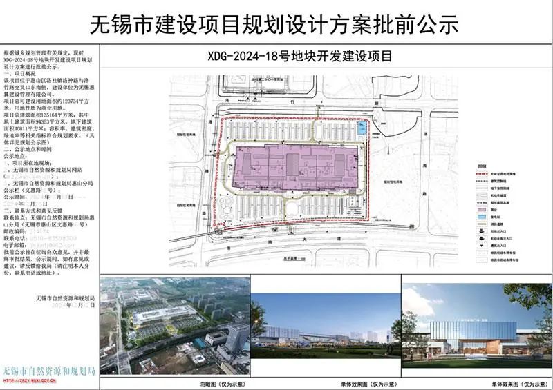 該項(xiàng)目位于惠山區(qū)洛社鎮(zhèn)洛神路與洛竹路交叉口東南側(cè),建設(shè)單位為無(wú)錫惠翼建設(shè)管理有限公司。從公示的效果圖可以看出,無(wú)錫杉杉奧特萊斯將打造三層商業(yè)體,造型大氣,且富有個(gè)性。