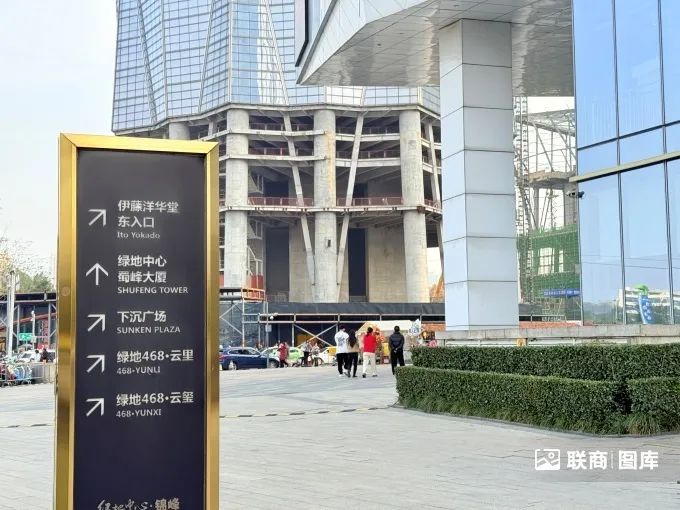 其三,受綠地中心468“停工”拖累。綠地468綜合項(xiàng)目包含主樓(蜀峰),副樓(錦峰、云璽等)、商場(伊藤廣場),住宅(468公館)、街區(qū)(云里、熙街)等。其中曾經(jīng)的“成都第一高”(如今第一高樓是498米高的中海天府中心)468蜀峰這幾年一直是停工的狀態(tài),影響了伊藤廣場的購物體驗(yàn)。