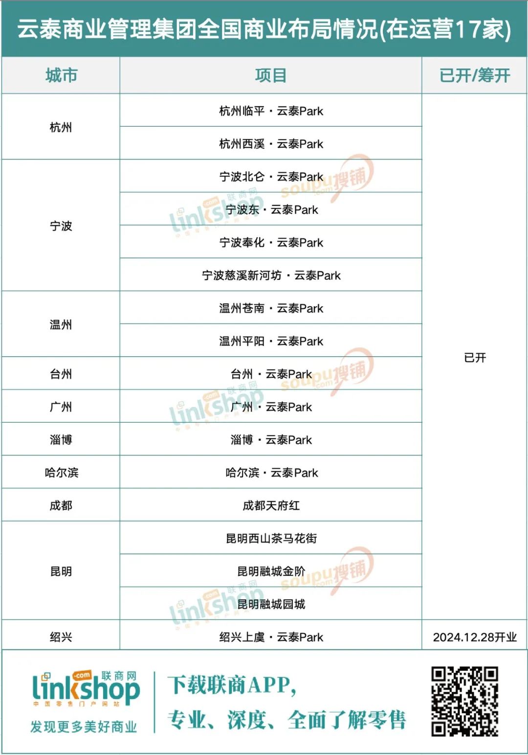 自成立以來(lái),云泰商業(yè)管理包括了杭州、寧波、溫州、臺(tái)州、廣州、成都、昆明、淄博、天津及哈爾濱等城市近30個(gè)商業(yè)項(xiàng)目,涵蓋購(gòu)物中心、特色街區(qū)和社區(qū)商業(yè)等業(yè)態(tài)模式,全國(guó)在管面積超300萬(wàn)㎡,團(tuán)隊(duì)規(guī)模千余人。