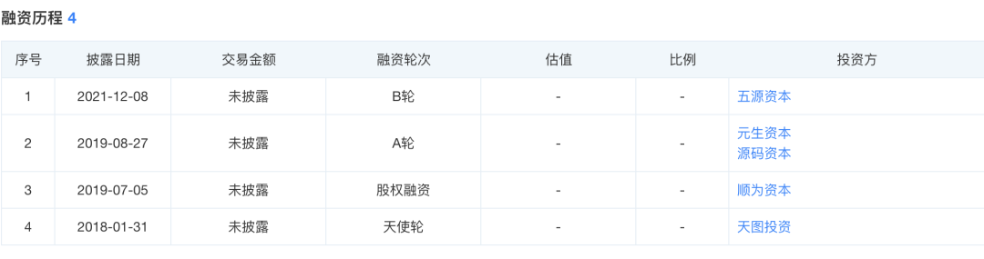 作為新茶飲賽道的一員,茶顏悅色也收獲了不少投資機構(gòu)的押注。據(jù)天眼查數(shù)據(jù)顯示,茶顏悅色在2018年到2021年共經(jīng)歷了4輪融資——分別是天圖投資的天使輪、順為資本的股權(quán)融資,以及元生資本、源碼資本的A輪融資,五源資本的B輪融資。