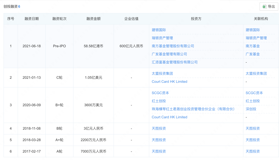 而比茶顏悅色晚2年成立的奈雪的茶,其在搶跑上市之前,也經(jīng)歷了6輪融資,包括2017年、2018年天圖投資參與A輪、A 輪和B輪融資,累計投入的3.92億元人民幣;2020年由SCGC資本、紅土創(chuàng)投深創(chuàng)投等機構(gòu)投資的3600萬美元B 輪融資;2021年太盟投資集團的1億美元C輪融資,以及上市前夕,多家機構(gòu)參與的總額達58.58億港幣的Pre-IPO融資。