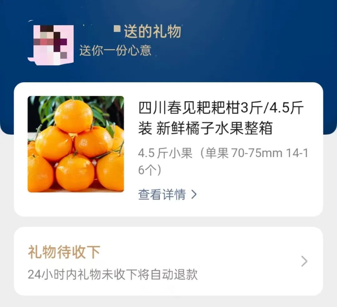 倘若用戶超過24小時(shí)不領(lǐng)取禮物,訂單自動(dòng)取消并退款給贈(zèng)送方,退款將按訂單支付時(shí)的渠道原路返回。