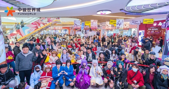 福州中駿世界城的獨(dú)特之處,從他們運(yùn)營(yíng)二次元業(yè)態(tài)的方式上就能看出來(lái)。走進(jìn)福州中駿世界城中庭,就可以看到四樓掛著的五個(gè)大字“歡聚二次元”。
