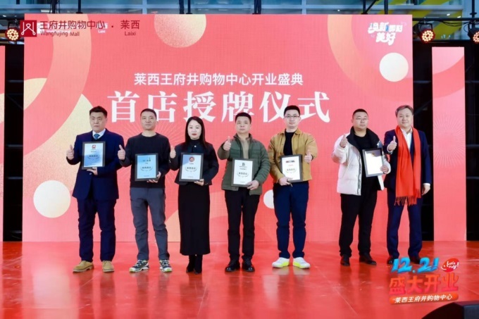 萊西市委常委、副市長周才為多家城市首店品牌頒發(fā)「首店牌匾」