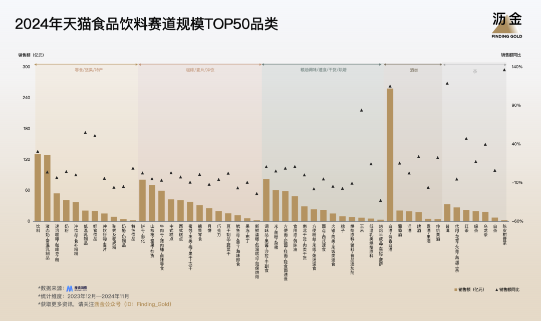 2024年天貓食品飲料賽道規(guī)模TOP50品類