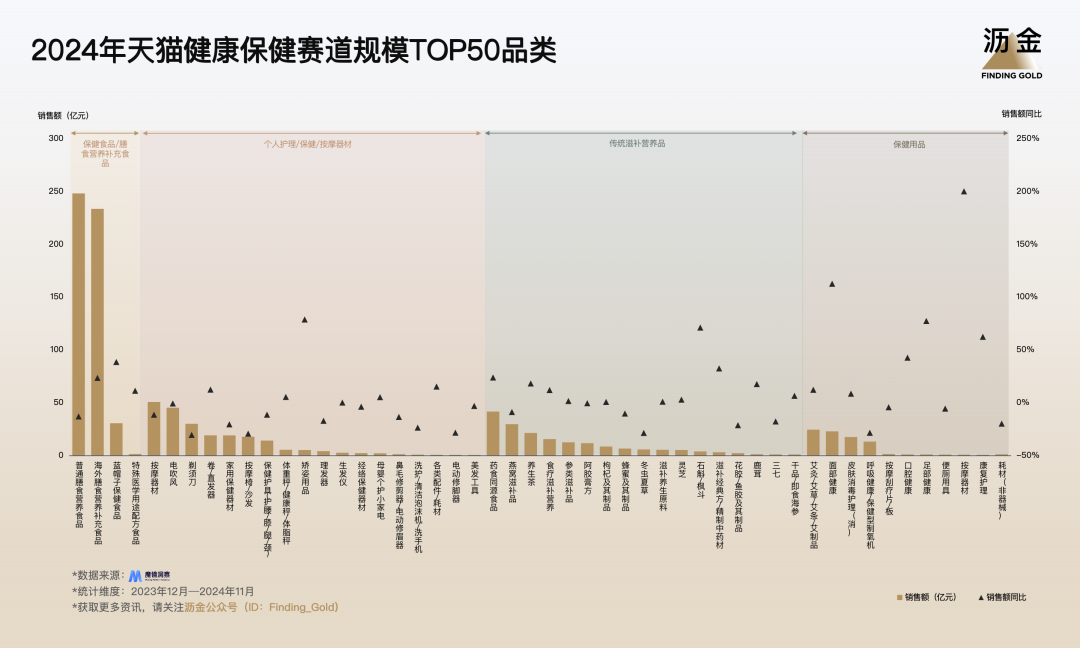2024年天貓健康保健賽道規(guī)模TOP50品類