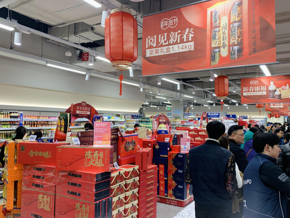 12月24日,盒馬鮮生泰州大衛(wèi)茂店正式開(kāi)業(yè),這是盒馬在江蘇省布局的第十個(gè)區(qū)域。年關(guān)將近,為助力年貨消費(fèi)熱潮,盒馬泰州首店增設(shè)了大量年貨陳列,車?yán)遄、年宵花、?jiān)果禮盒等商品吸引不少市民前來(lái)選購(gòu)。