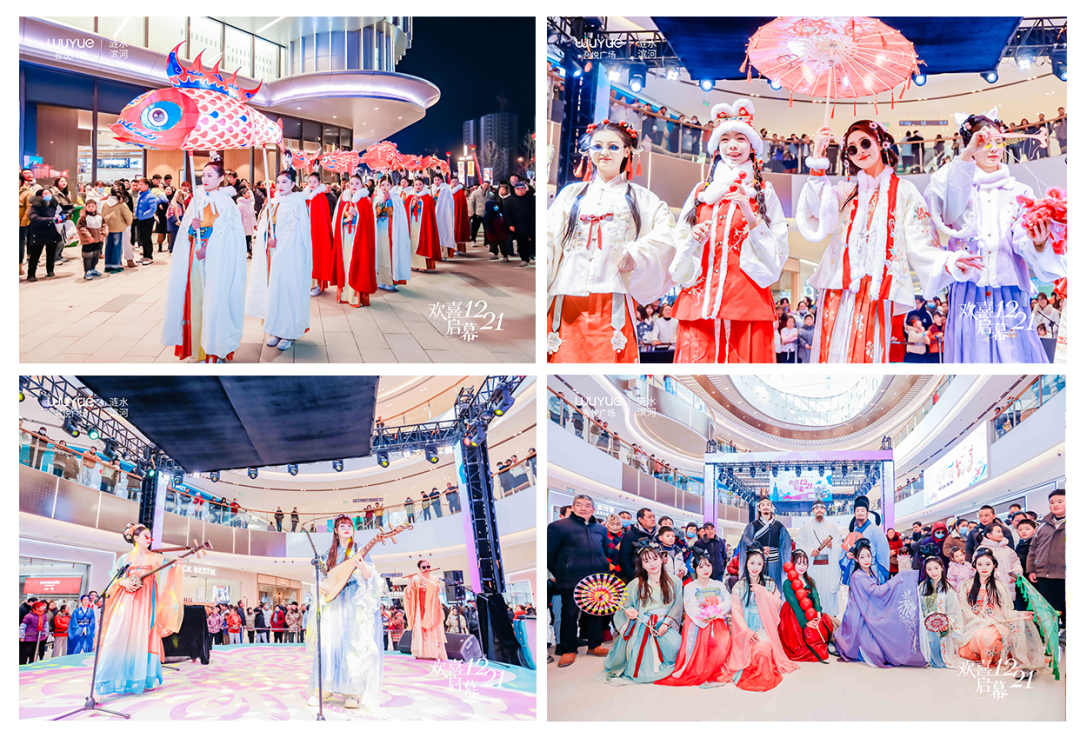 在漣水濱河吾悅廣場(chǎng),非遺文化被賦予了新的生命與活力。項(xiàng)目帶來了蘇軾&米芾穿越快閃秀、汪滿田魚燈巡游、三弦演出、剪紙走秀、皮影戲等在地非遺文化活動(dòng),以視覺奇觀展現(xiàn)東方美學(xué),顧客甚至能在吾悅蹦一場(chǎng)國潮唐迪。消費(fèi)者在互動(dòng)中感受傳統(tǒng)文化的魅力,實(shí)現(xiàn)文化消費(fèi)的深度參與和體驗(yàn)升級(jí)。