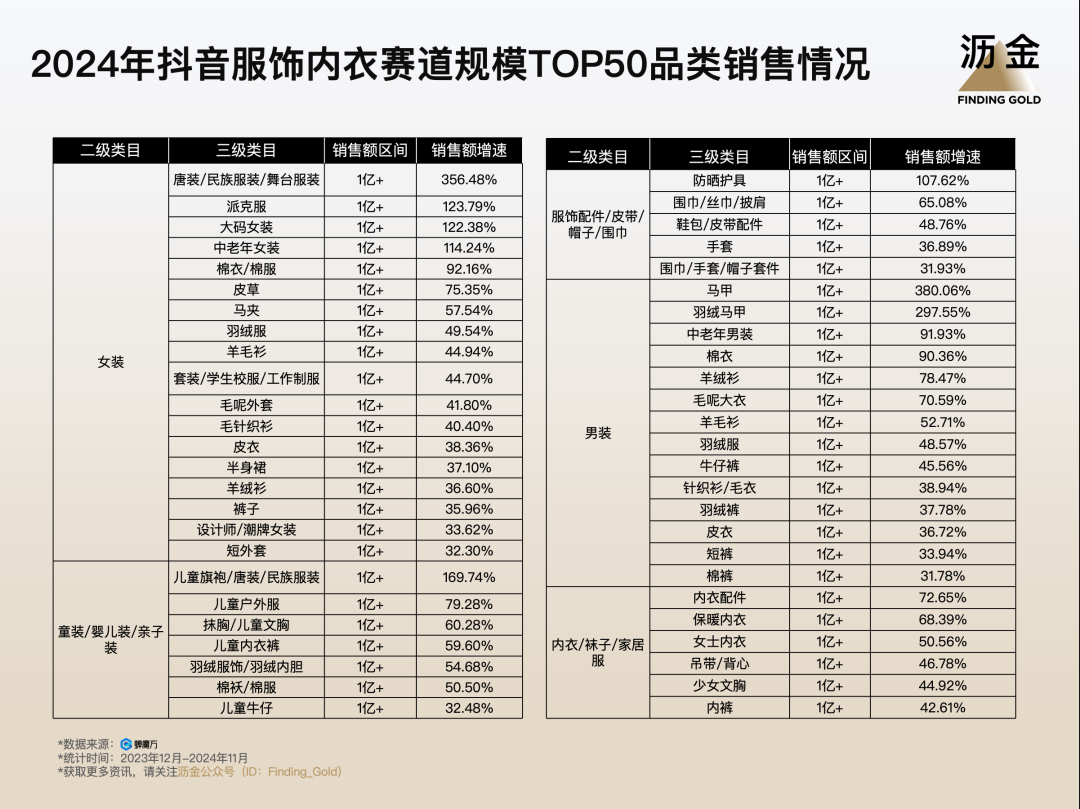 2024年抖音服飾內(nèi)衣賽道規(guī)模TOP50品類