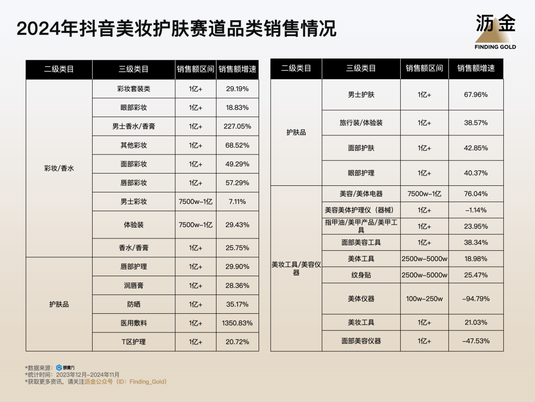 2024年抖音美妝護(hù)膚賽道規(guī)模TOP50品類