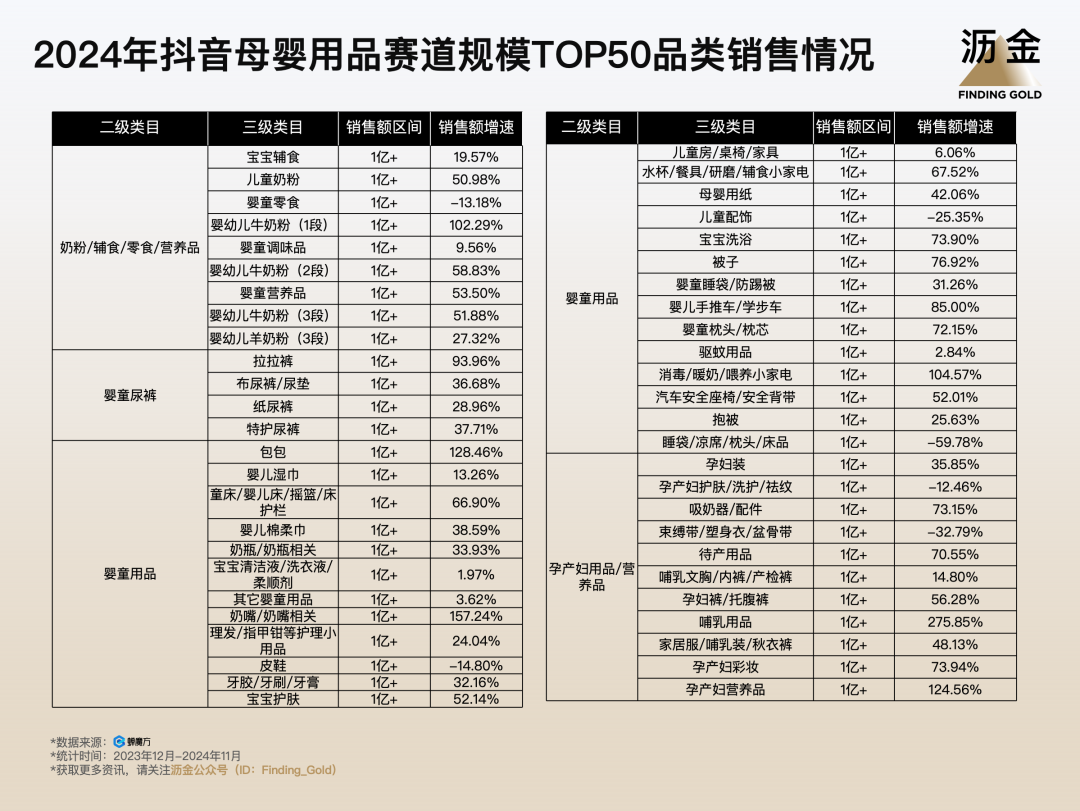 2024年抖音母嬰用品賽道規(guī)模TOP50品類