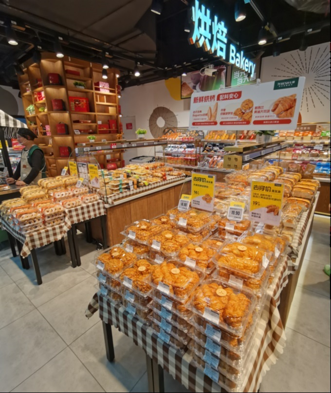 點(diǎn)評:在烘焙品類上,京東七鮮主要著重經(jīng)營現(xiàn)烤面包分類,冷藏蛋糕分類經(jīng)營較少;而盒馬鮮生則冷藏蛋糕+現(xiàn)烤面包并駕齊驅(qū),并產(chǎn)生多個爆款單品。在烘焙品類上,盒馬鮮生完勝京東七鮮。