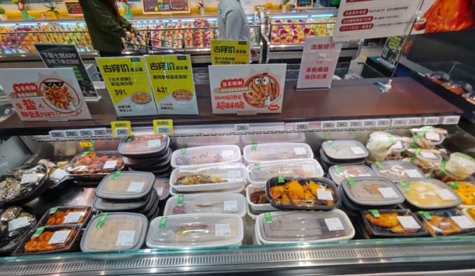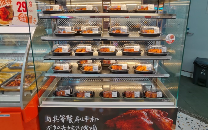 點(diǎn)評:京東七鮮在熟食品類的經(jīng)營主要是以單品經(jīng)營為主,沒有形成熟食商品品類矩陣,整體品類商品缺品缺項較嚴(yán)重,品類的豐富性嚴(yán)重不足,導(dǎo)致競爭力差。反之,盒馬鮮生的熟食品類在經(jīng)營上已經(jīng)形成清晰的烤、炸、鹵等商品矩陣,商品的出品品質(zhì)和豐富性較好,看了讓人極具購買欲。