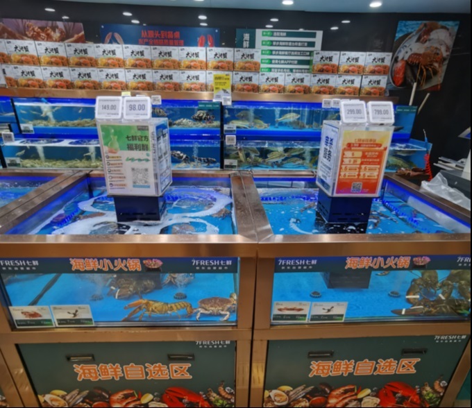 以下是盒馬鮮生海鮮水產(chǎn)品類照片: