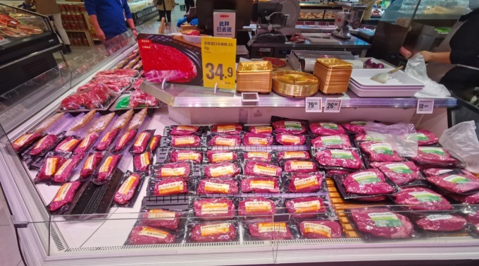 點(diǎn)評:盒馬鮮生在進(jìn)口安格斯谷飼牛肉和鮮切黃牛肉的經(jīng)營上,豐富度明顯優(yōu)于京東七鮮,同時盒馬鮮生在牛肉分類上已經(jīng)形成燉、煮、烤、煎、涮不同烹飪方式商品矩陣,差異化非常明顯。