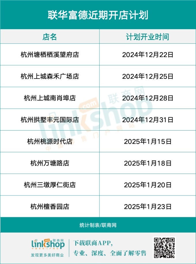 據(jù)介紹,“聯(lián)華富德”2024年底前將在杭州開出4家店,2025年1月將再開出4家,計(jì)劃在浙江省內(nèi)完成50家門店的布局。